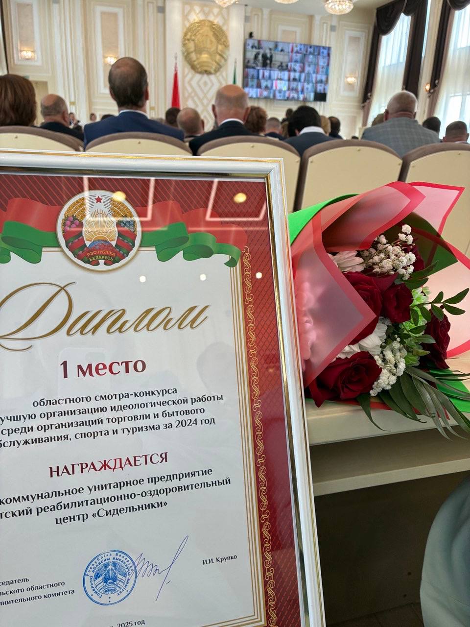 Состоялось торжественное награждение победителей областного смотра-конкурса на лучшую организацию идеологической работы в трудовых коллективах Гомельской области за 2024 год. КУП «Детский реабилитационно-оздоровительный центр «Сидельники» стал дипломантом 1 степени среди организаций торговли и бытового обслуживания, спорта и туризма.